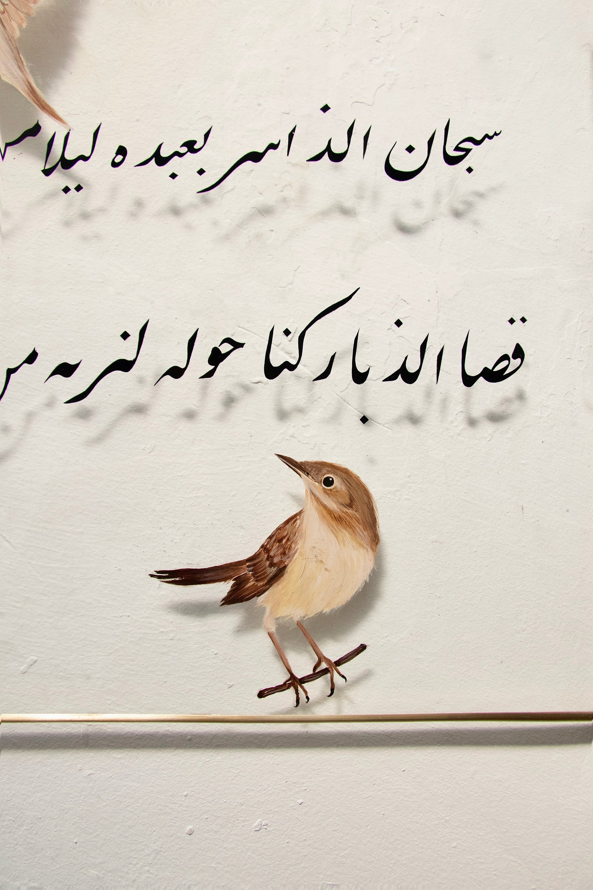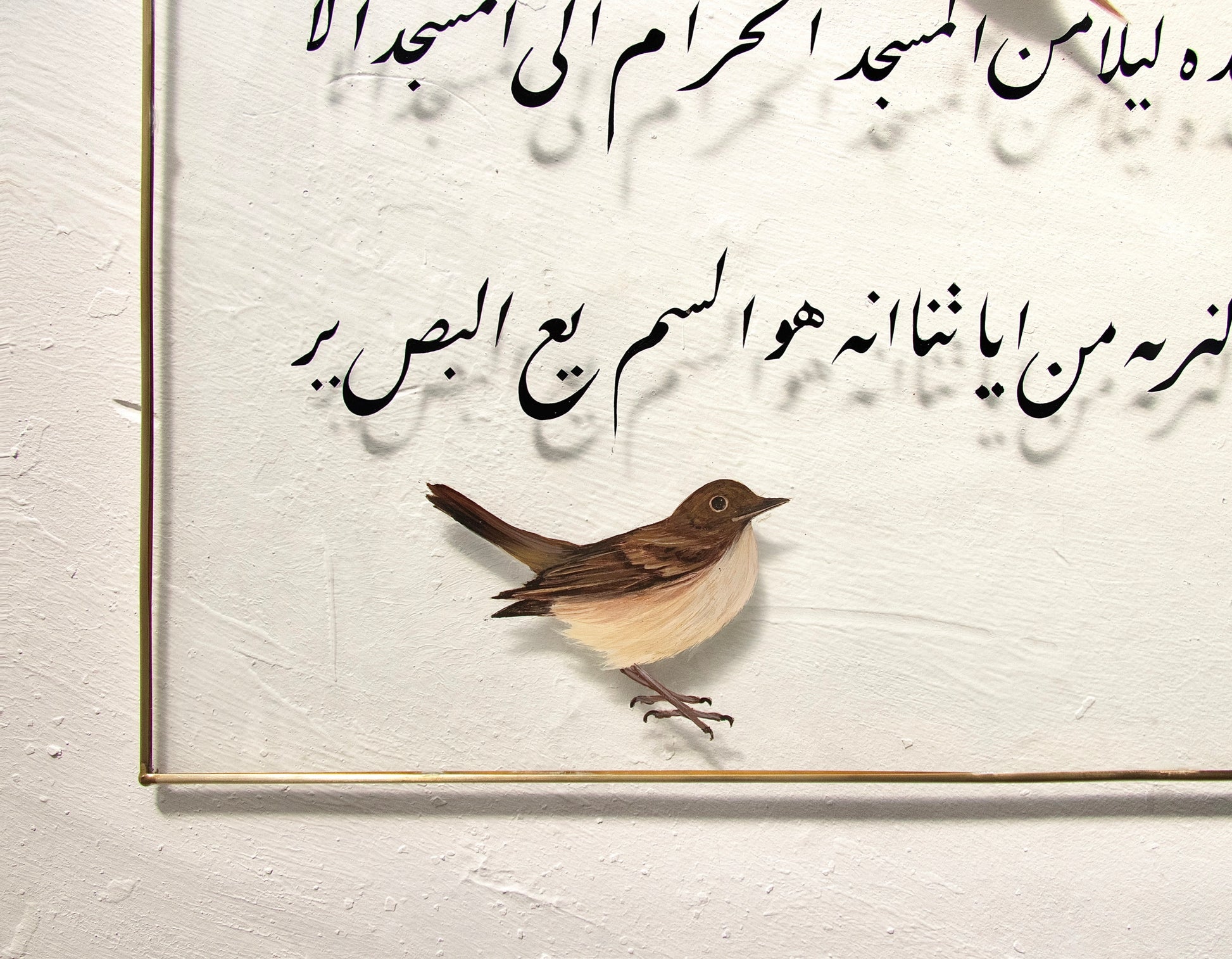 görseldeki eserde talik yazı stilinde İsrâ Sûresi 1. ayet yazmaktadır;