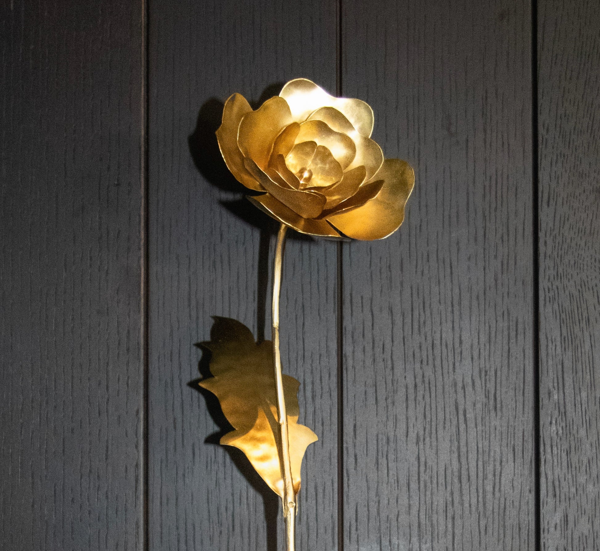 Pirinç ile işlenen gül, geçici güzelliğini kalıcı bir zarafete dönüştürür.