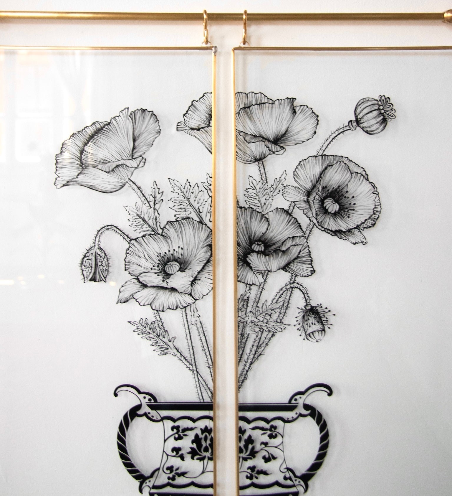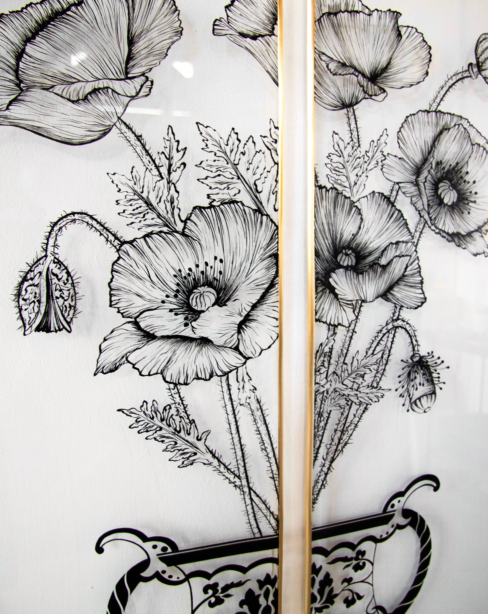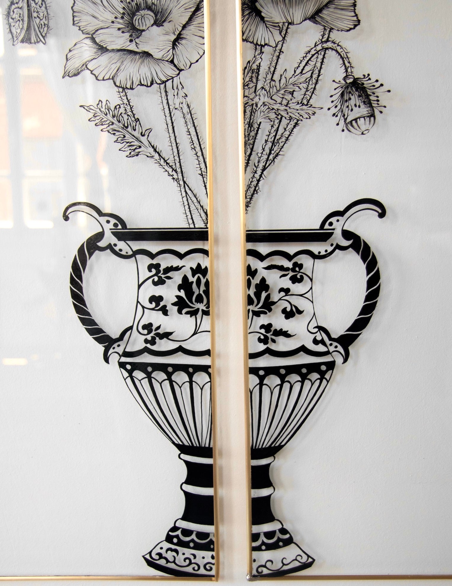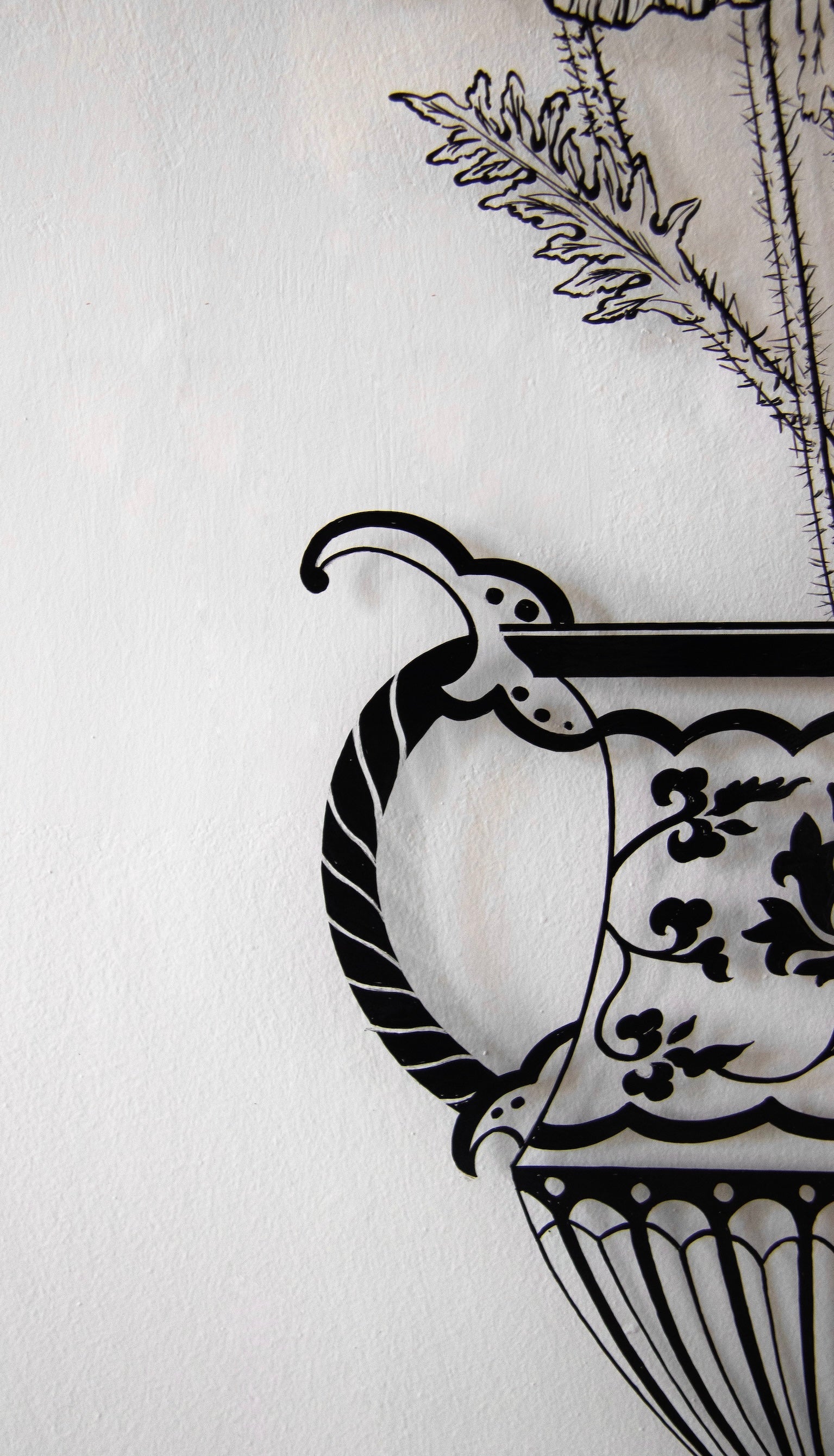 bu form kendi içinde tamamlanmış bir denge kuruyor. çiçekler yukarı doğru uzanıyor; aynı kökten çıkıp aynı boşluktan geçerek bir bütün oluyor.
